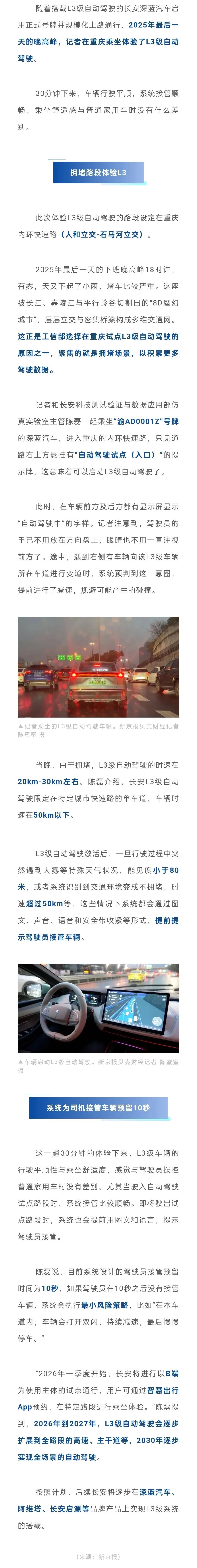 正文 在重庆雨天晚高峰,首次体验了L3级自动驾驶 2026-01-14 /3142 阅读 两江新区悦来人民小学开工 « 上一篇 大江焕新 水清鱼跃 下一篇 » 相关阅读 即将开建!两江新区将新增一主题公园! 2025-12-163145人在看 比秦L EV更长,熏黑大灯,半隐藏式门把手,溜背造型,秦家族来新成员! 2025-12-283466人在看 大拆迁!重庆一批人要暴富 2025-11-263844人在看 打卡重庆“醉美”夕阳,就在这条滨江步道! 2026-01-083781人在看 热门文章 寒夜不眠 晨光接棒 新年里的守护者们 重庆:公积金全款购房提取条件进一步放宽 车长5米1多,轴距超3米, “星际座舱” ,续航超1200公里! 随便看看 重庆新增一个超千亿立方米页岩气田! 车长超5米,轴距3米多,全系标配激光雷达,还能“一键躺平”! 中国平安 | 车主生活节 美好生活+ 50元生活缴费券/9.9空调清洗券,尽在平安好车主 过去一年,重庆人最喜欢说的话竟然是…… 百公里不到3个油,15.6英寸大屏,中型轿车9.68万起就能买! 重庆中心城区入冬!未来几天抓紧晒太阳